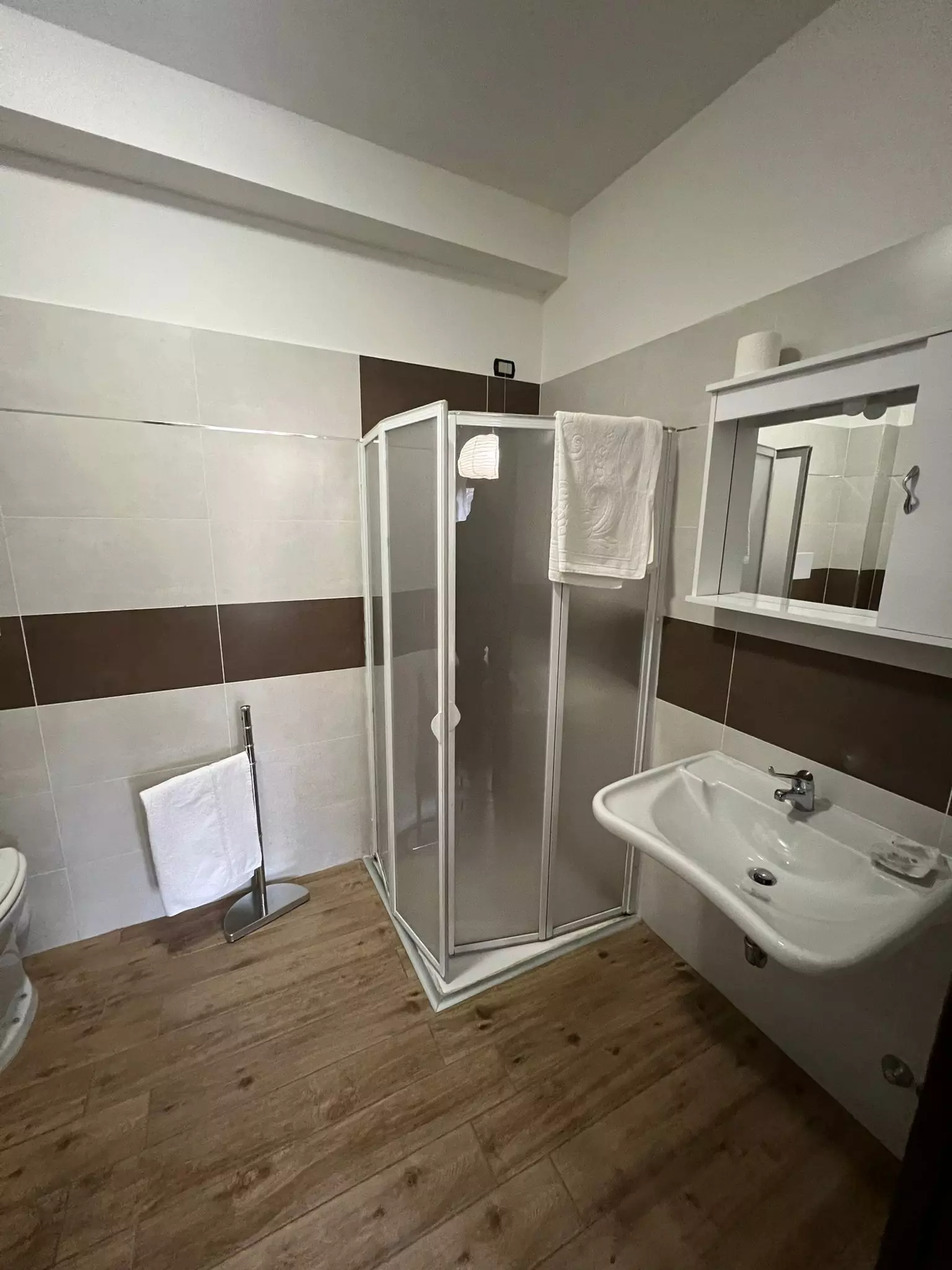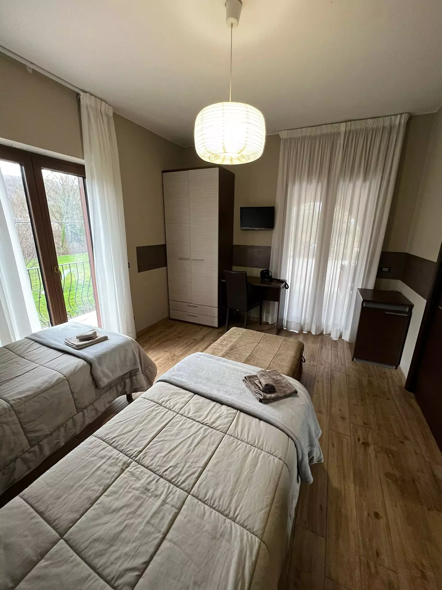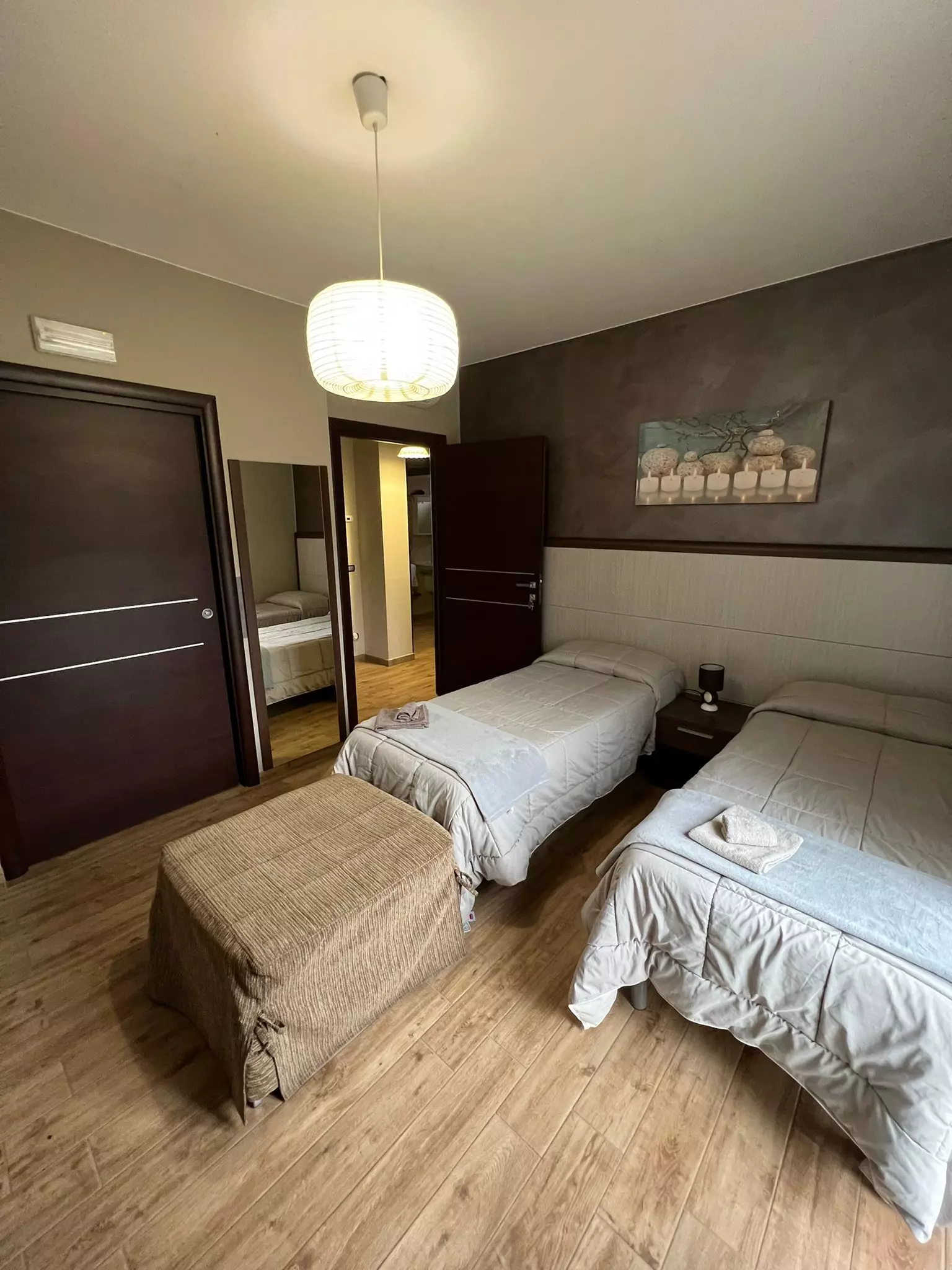 Camera di circa 20 mq, caratterizzata da arredamento moderno. Interamente climatizzata, dispone di un bagno privato con doccia e asciugacapelli.
